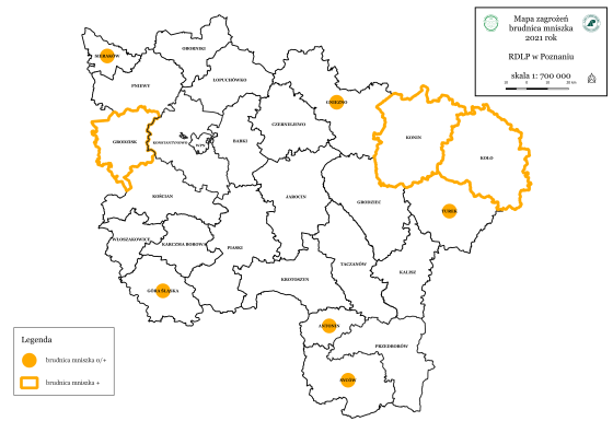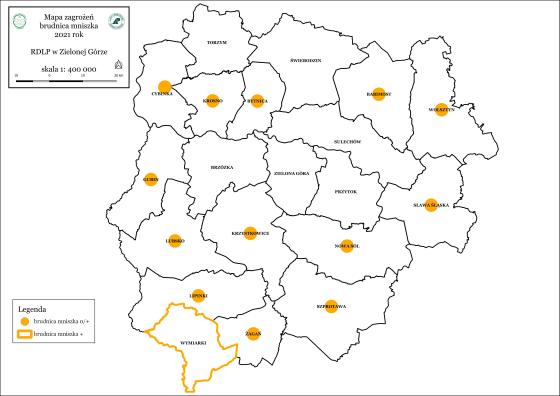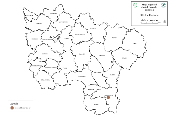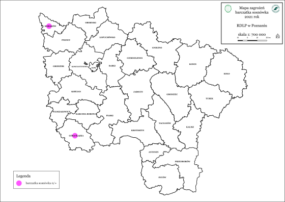 barczatka sosnówka - zagrożenie na 2021 r., RDLP w Zielonej Górze