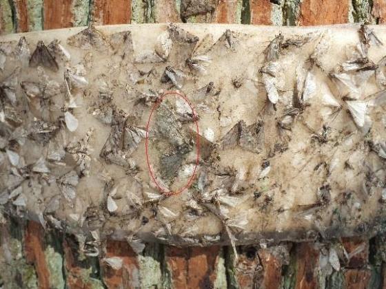 Apocheima pilosaria (Den. & Schiff.) – włochacz naśnieżek. Rójka: 1 dekada II do 3 dekady IV